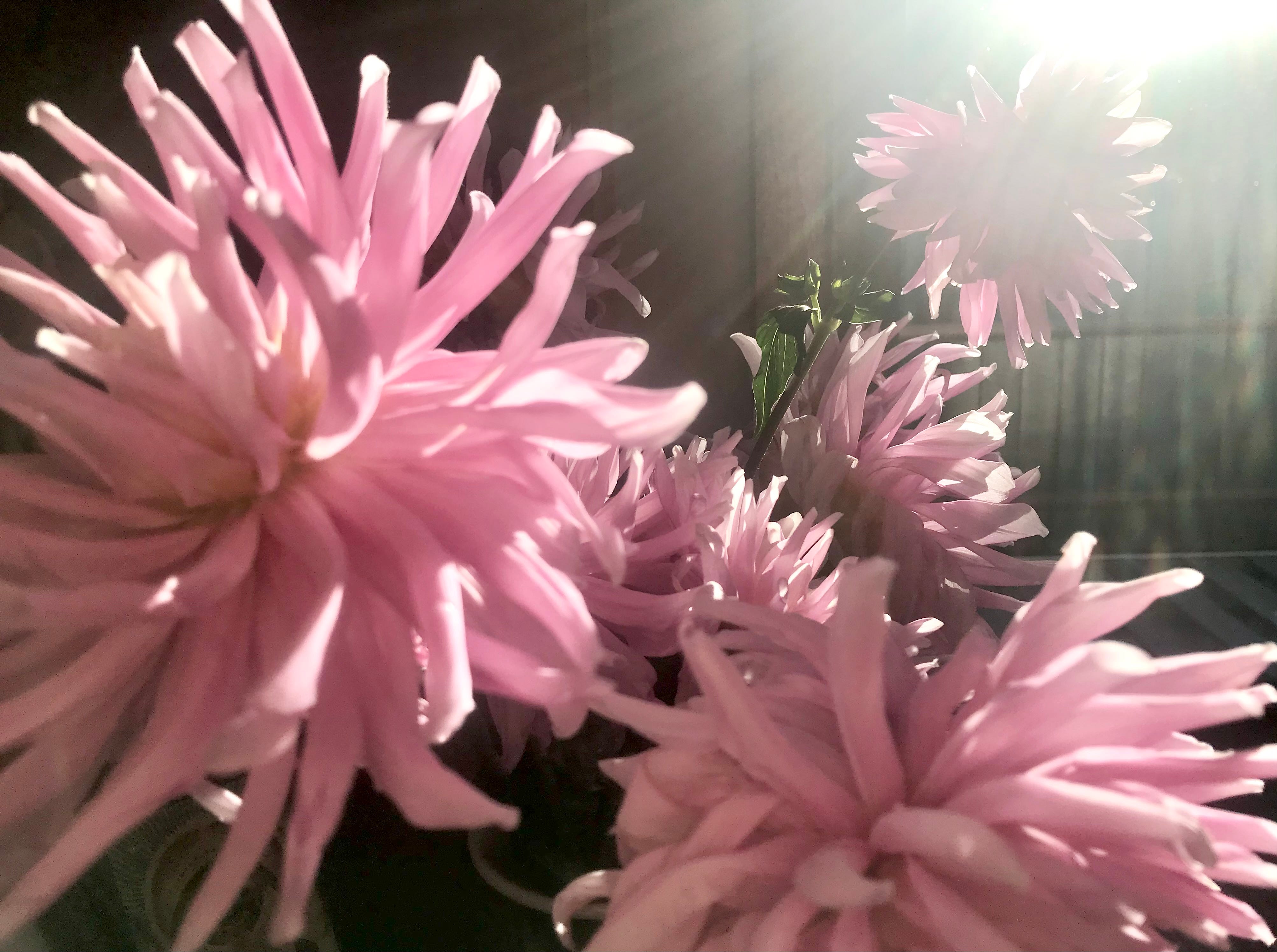 Over one night and day a big storm moved through and blew many of them over. I staked them and trimmed them, bringing the trimmings inside. In the late afternoon rays of sun they stood in an absolutely perfect mess in my tall, op-shop, Chinese vase looking like a miniature explosion of fireworks in my living room.